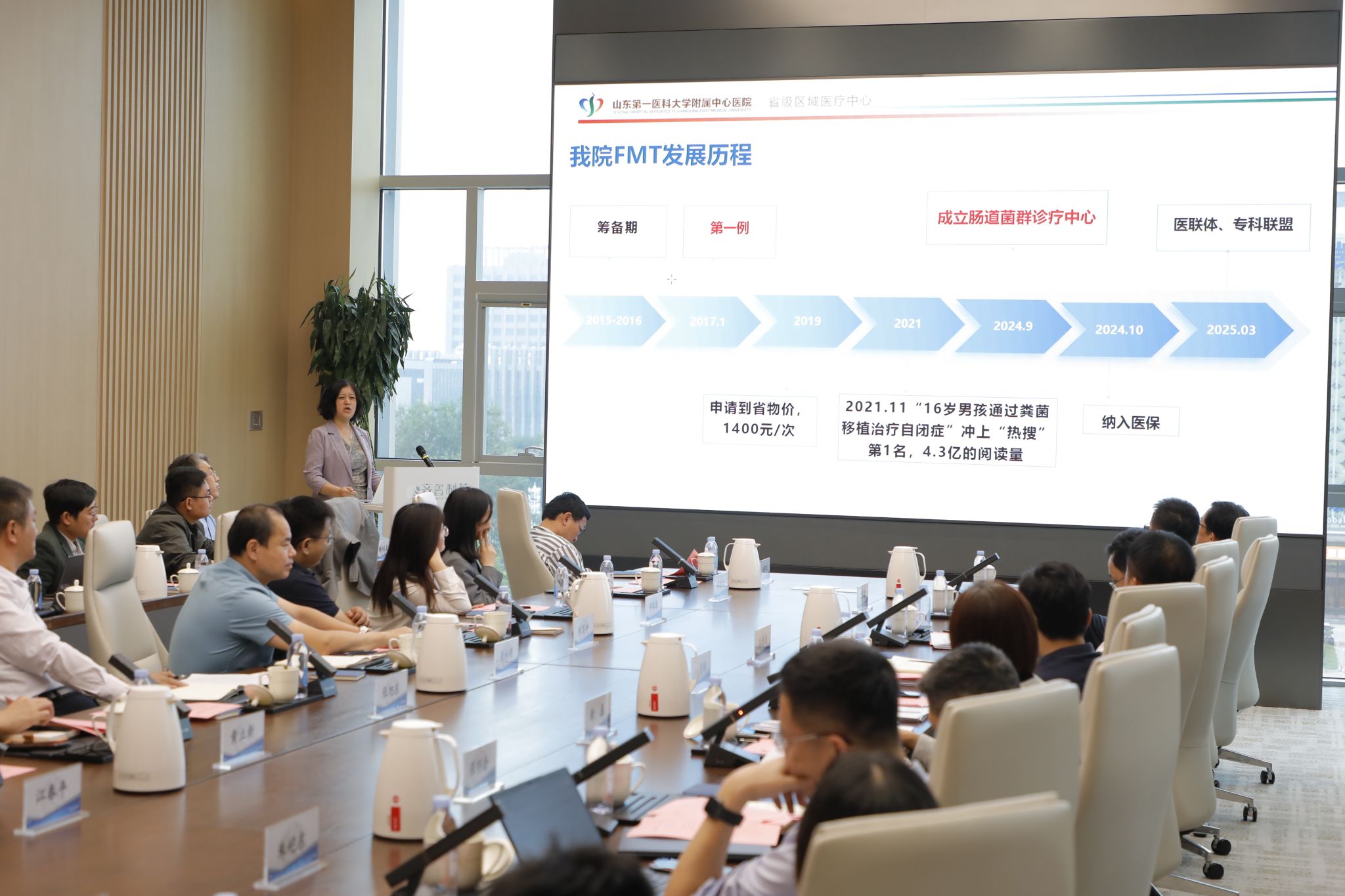 为深入贯彻“健康中国2030”战略,落实山东省新旧动能转换重大工程部署和济南市委常委会扩大会议精神,提高校(院)科技成果转化效能,实现供给方与需求方有效对接。 9月28日下午,成果转化与产业部部长岳林明带领相关学院和直附属医院有关专家,参加了由齐鲁制药集团承办的现代医药产业链产学研合作专场研讨会,校(院)脑科学与类脑研究院黄晓文教授、药学院白著双副研究员、济南市中心医院肠道菌群中心主任杨炜华等专家作主旨报告,为校企合作注入学术动能。